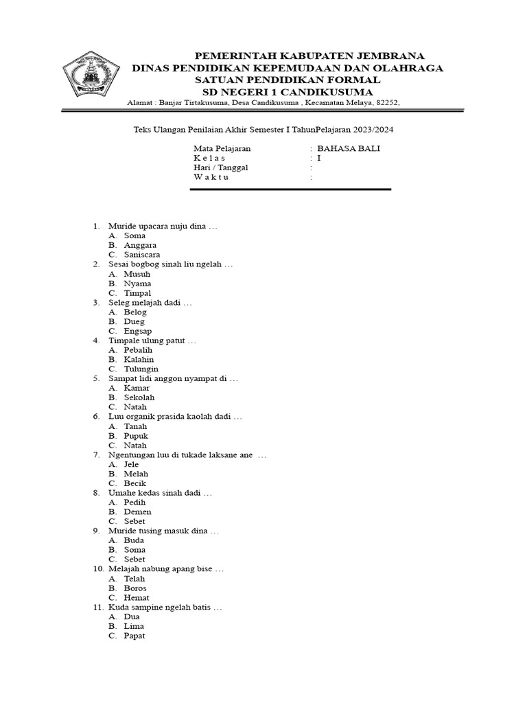 Menjelajahi Ujian Akhir Semester: Panduan dan Contoh Soal UAS Kelas 1 SMP Provinsi Bali